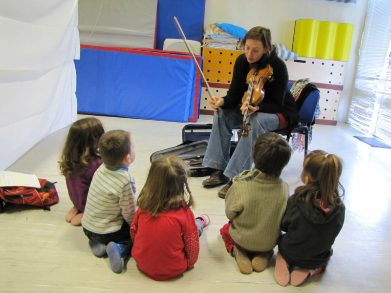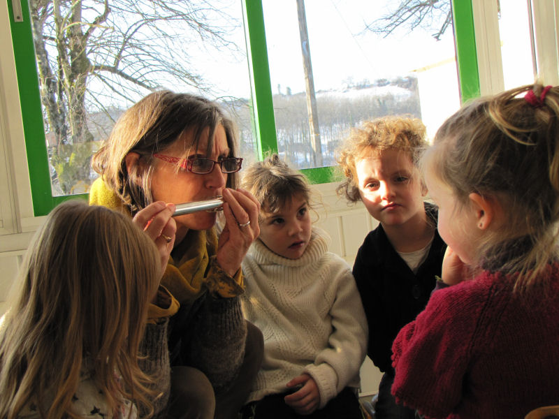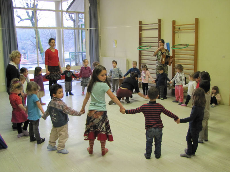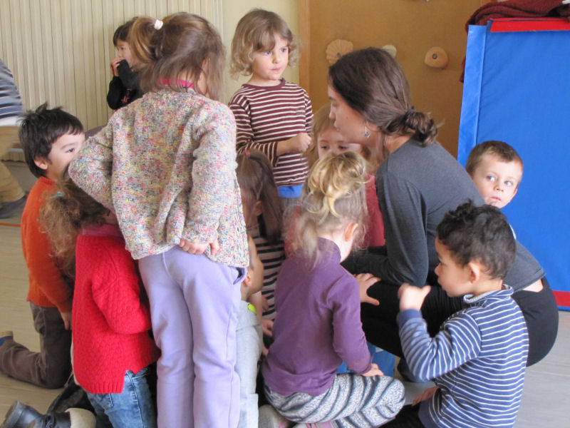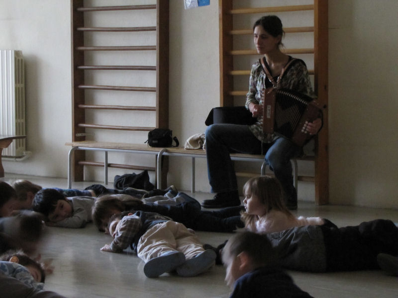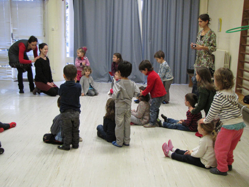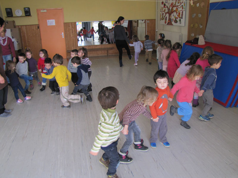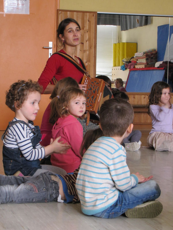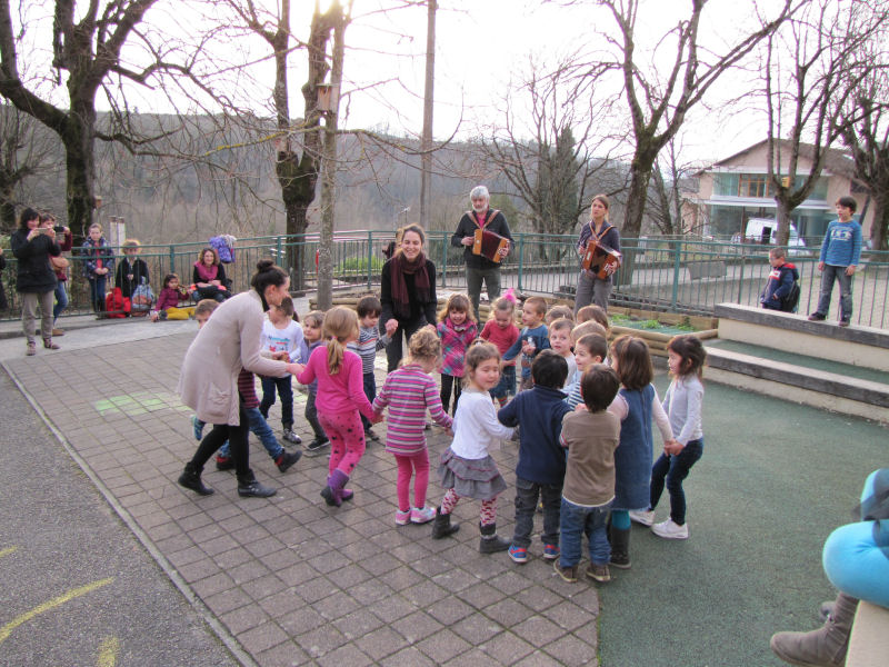 Ainsi, afin de contribuer à la sensibilisation du jeune public aux danses et musiques traditionnelles, nous avons proposé trois ateliers de découverte à une classe de maternelle de l'école de Pont en Royans : un atelier de musique et deux ateliers de danse. Ces ateliers ont été complétés par un travail effectué par l'enseignante avec ses élèves, notamment autour d'activités de motricité.